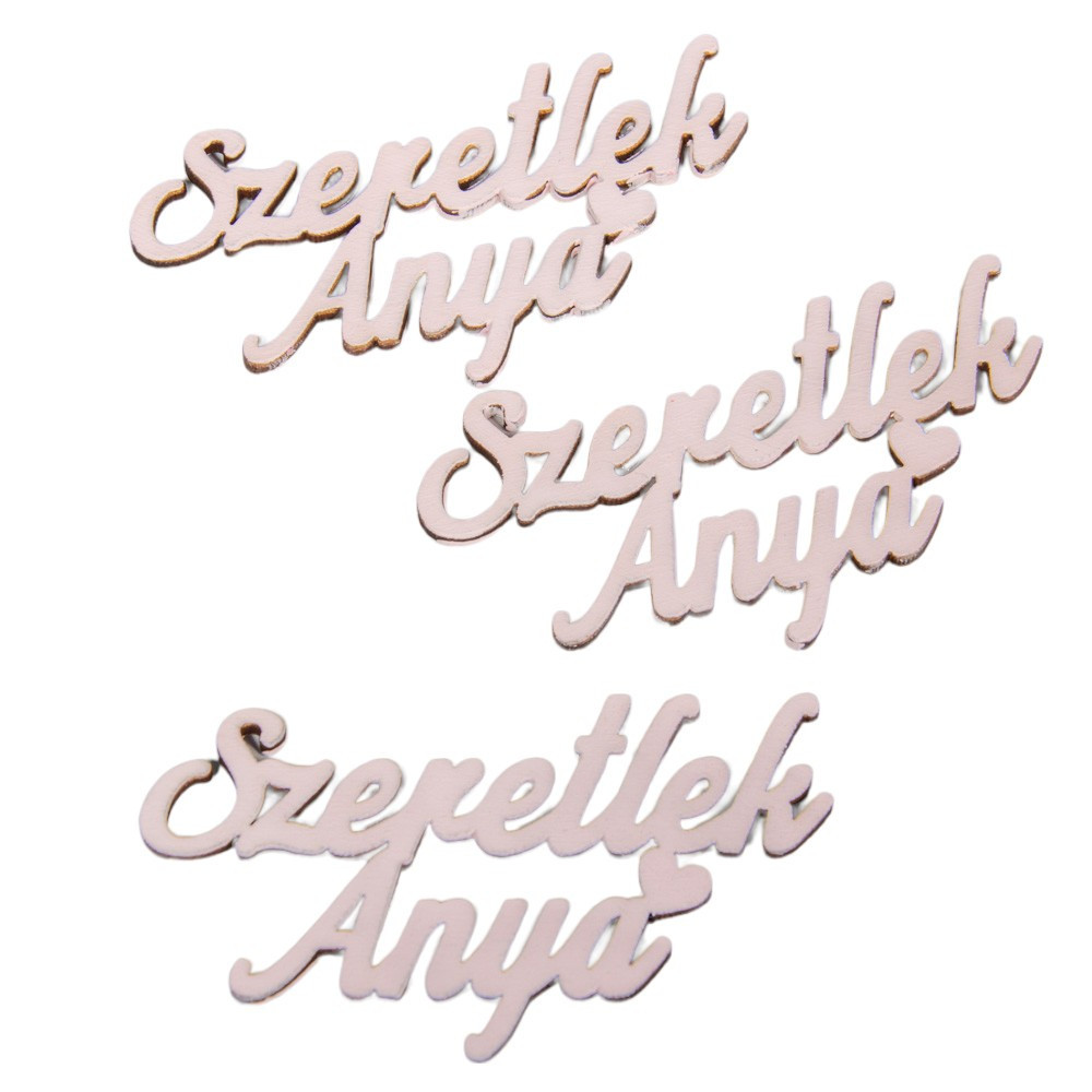 Szeretlek Anya felirat rózsaszín 9,5cm 3db-os