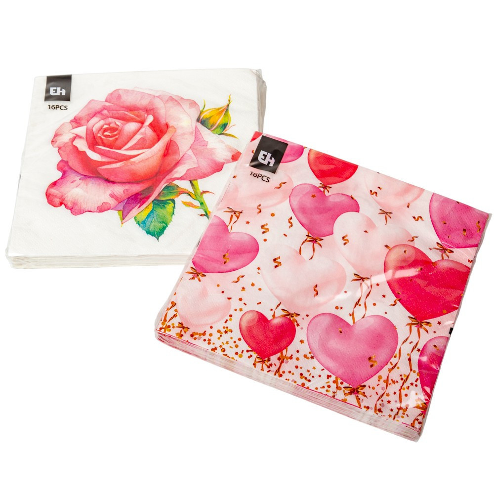Szív-rózsa mintás szalvéta 33x33cm 16db-os