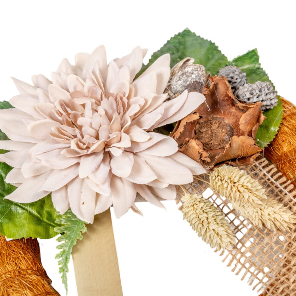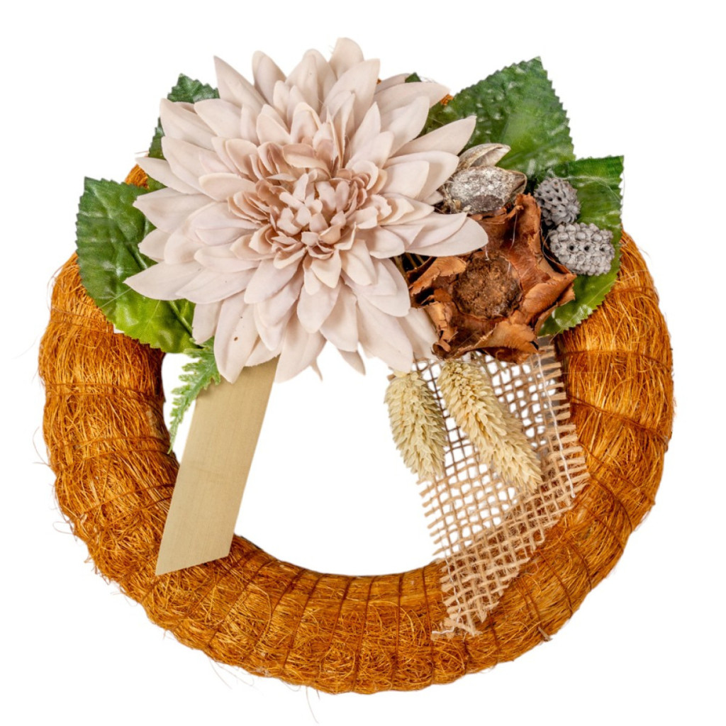 Szizálos széna koszorú selyem és szárazvirággal barna 20cm