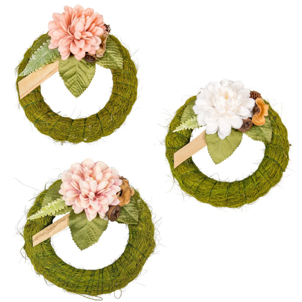 Szizálos széna koszorú szárazvirág díszítéssel zöld 15cm