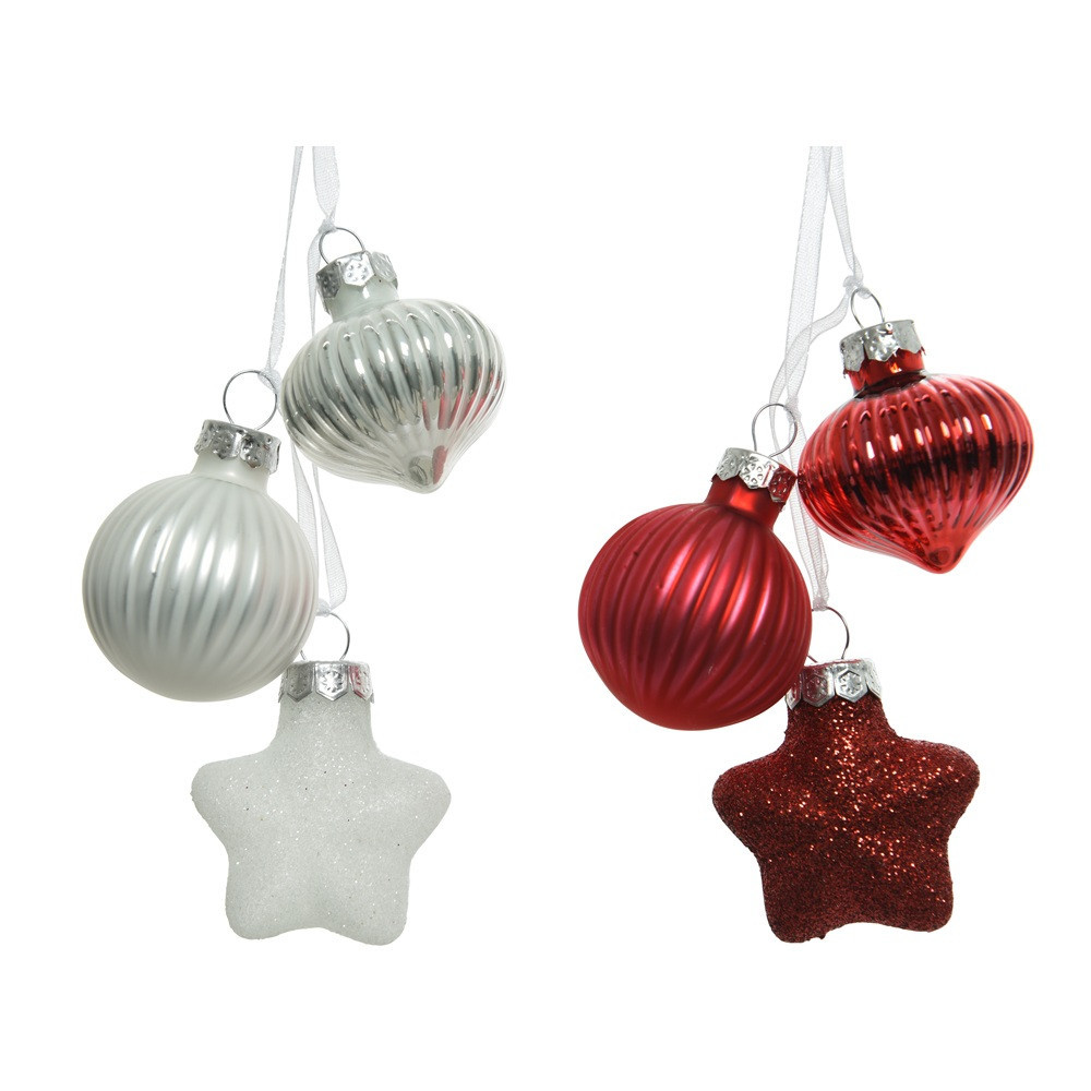 Üveg dísz fehér-piros mix 4cm 3db-os