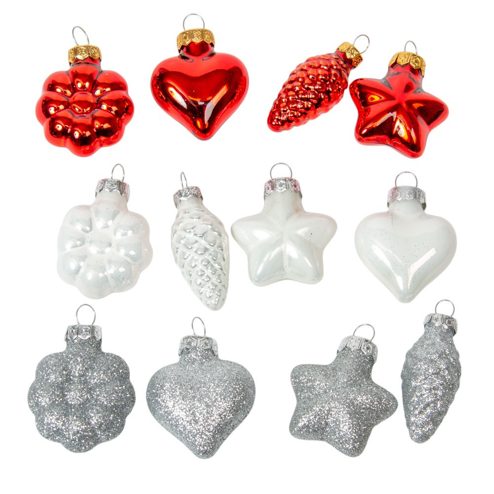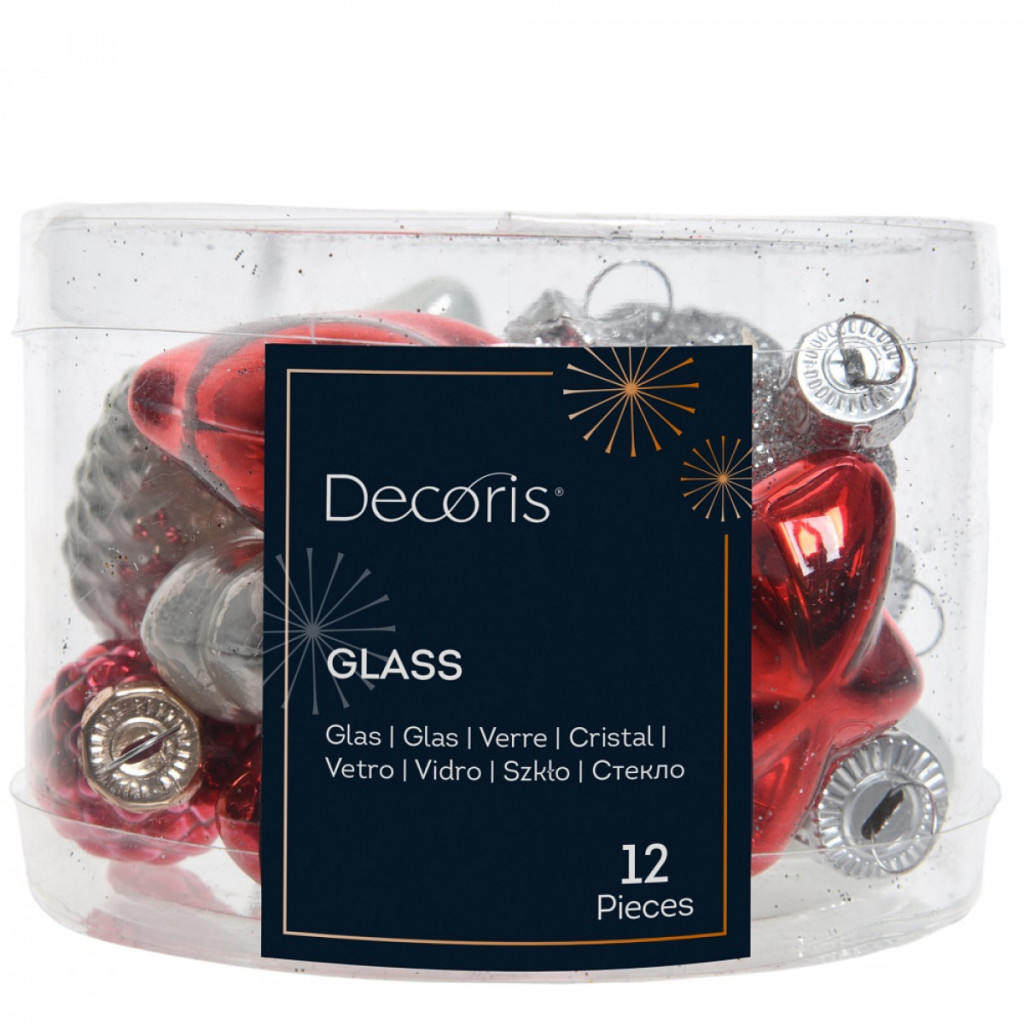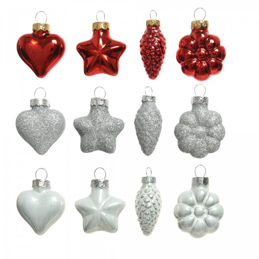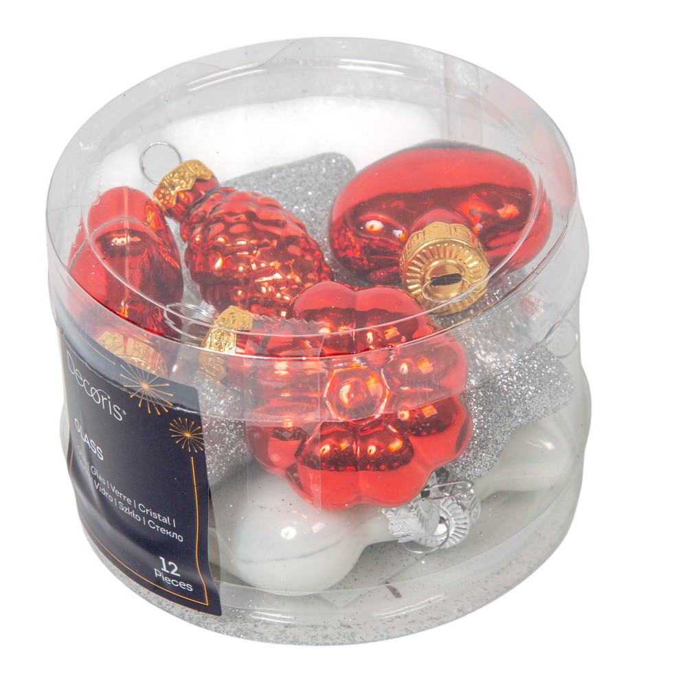 Üveg forma akasztós  piros-fehér 4cm 12db-os