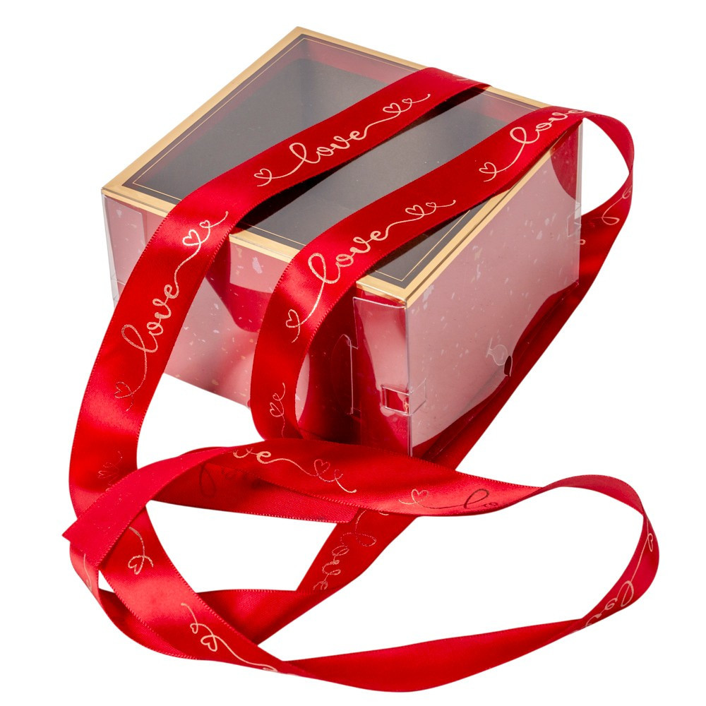 Virágdoboz átlátszó tetővel, szalaggal M8,5x13,5x13,5cm