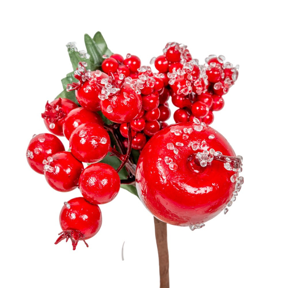 A 18 cm hosszú almás-bogyós pick gazdagon díszített, mélypiros fényű elemekkel, melyeket apró, áttetsző gyöngyszemek díszítenek – mintha jégcsapok ragyognának rajtuk.