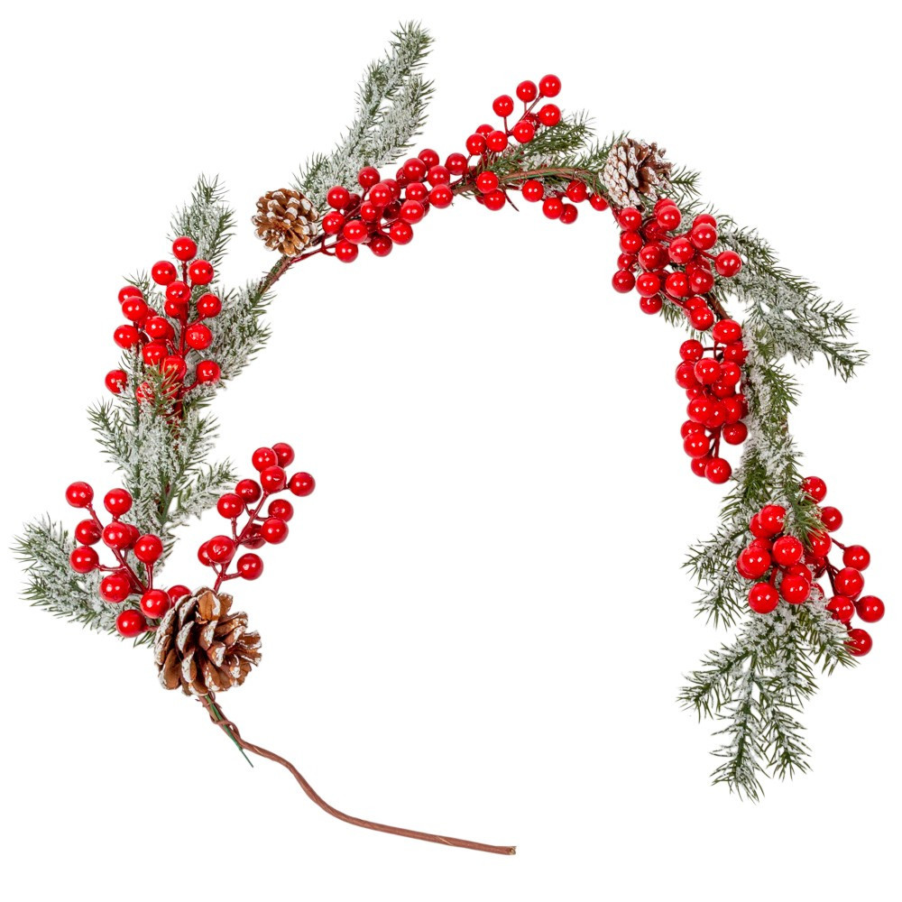 Ez a 130 cm hosszú fenyő girland a karácsony legszebb elemeit egyesíti: friss zöld tűlevelek, hóval hintett tobozok és élénkpiros bogyók alkotják a harmonikus, természetközeli kompozíciót. Tökéletes alap ajtó- vagy ablakdísznek, asztali futónak, lépcsőkorlátra, kandallóra, sőt koszorúalaphoz is.