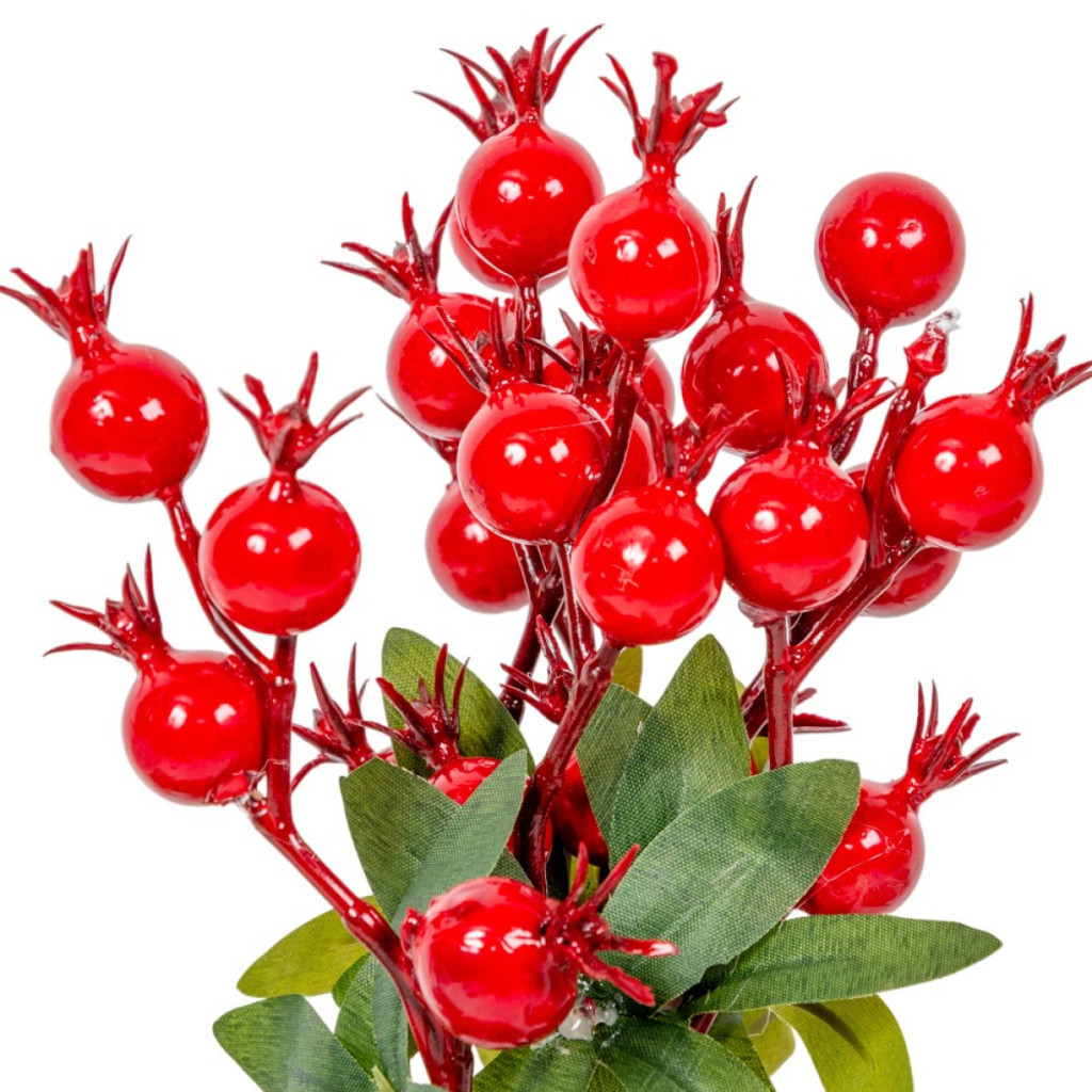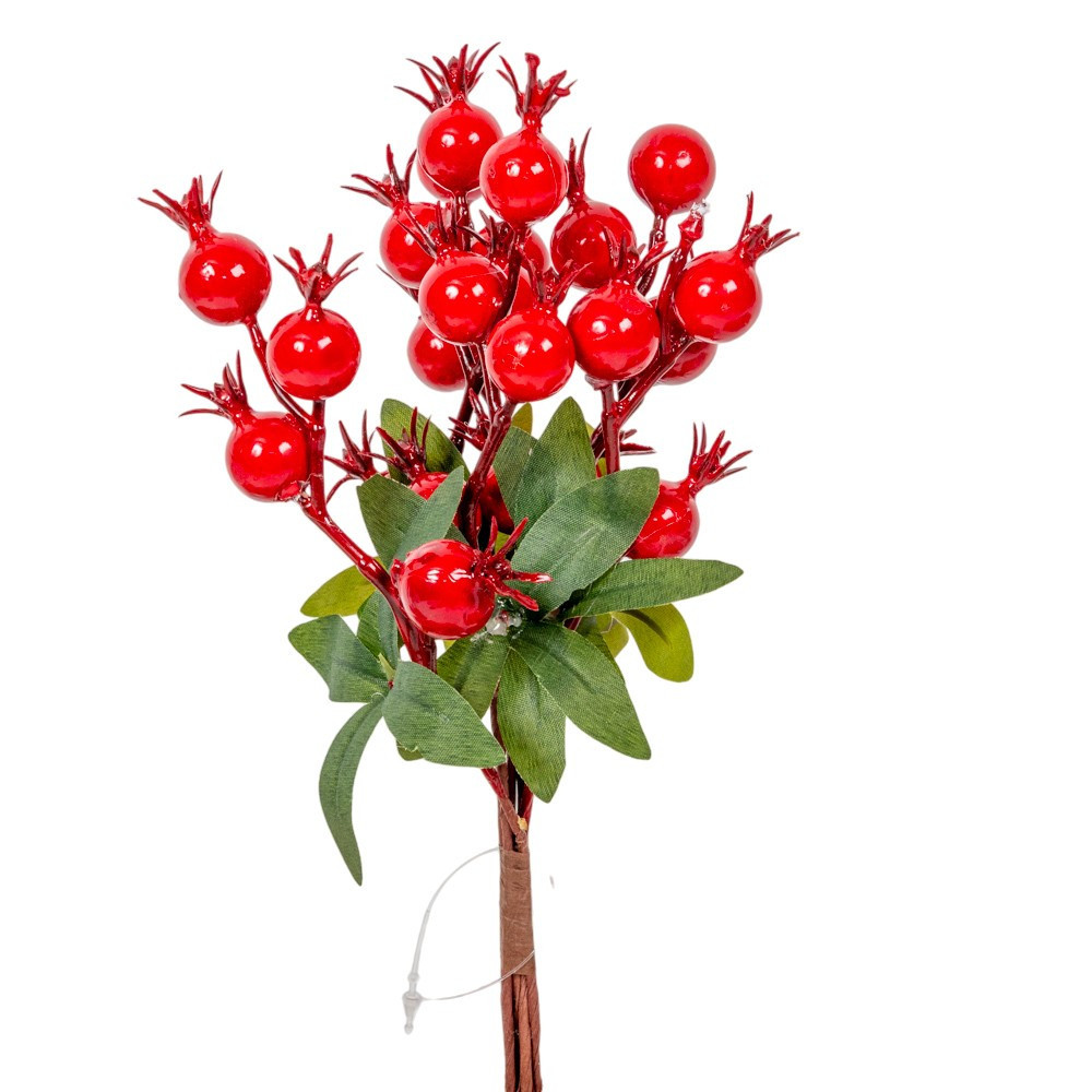 A 20 cm-es csipkebogyós pick a klasszikus karácsonyi dekoráció egyik legkedveltebb eleme. A fényes piros bogyók és a zöld levelek harmonikus kontrasztja meleg, természetes hangulatot áraszt.