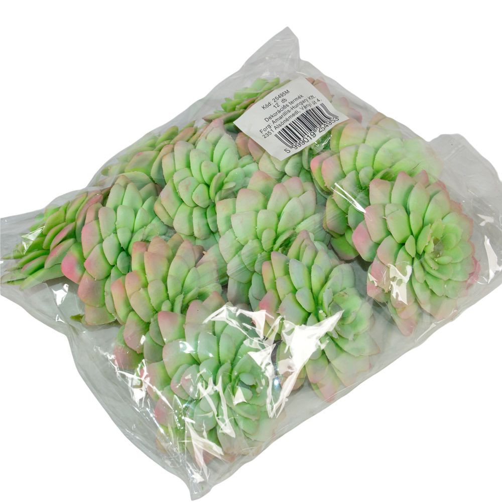Miért érdemes ezt a kövirózsát választanod? A legnagyobb értéke az élethű kidolgozásában és a sokoldalú felhasználhatóságában rejlik: a 6,5 cm-es méret éppen ideális ahhoz, hogy egy kisebb kőhatású kaspó központi eleme legyen. A zöld levelek fantasztikusan harmonizálnak a webáruházunkban kapható natúr fa szeletekkel, tálakkal vagy a különféle dekorációs kavicsokkal is. Mivel minőségi anyagból készült, a növény nem hervad el és nem igényel napfényt, így a lakás sötétebb pontjain is örökzöld marad. A kövirózsa geometriai formája természetes szimmetriát visz a dekorációba, elkerülve a mesterkélt hatást.