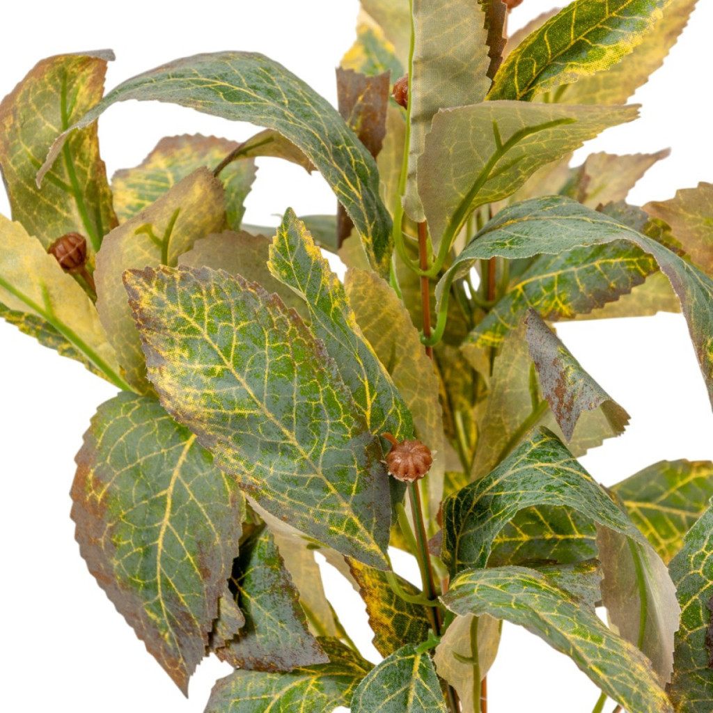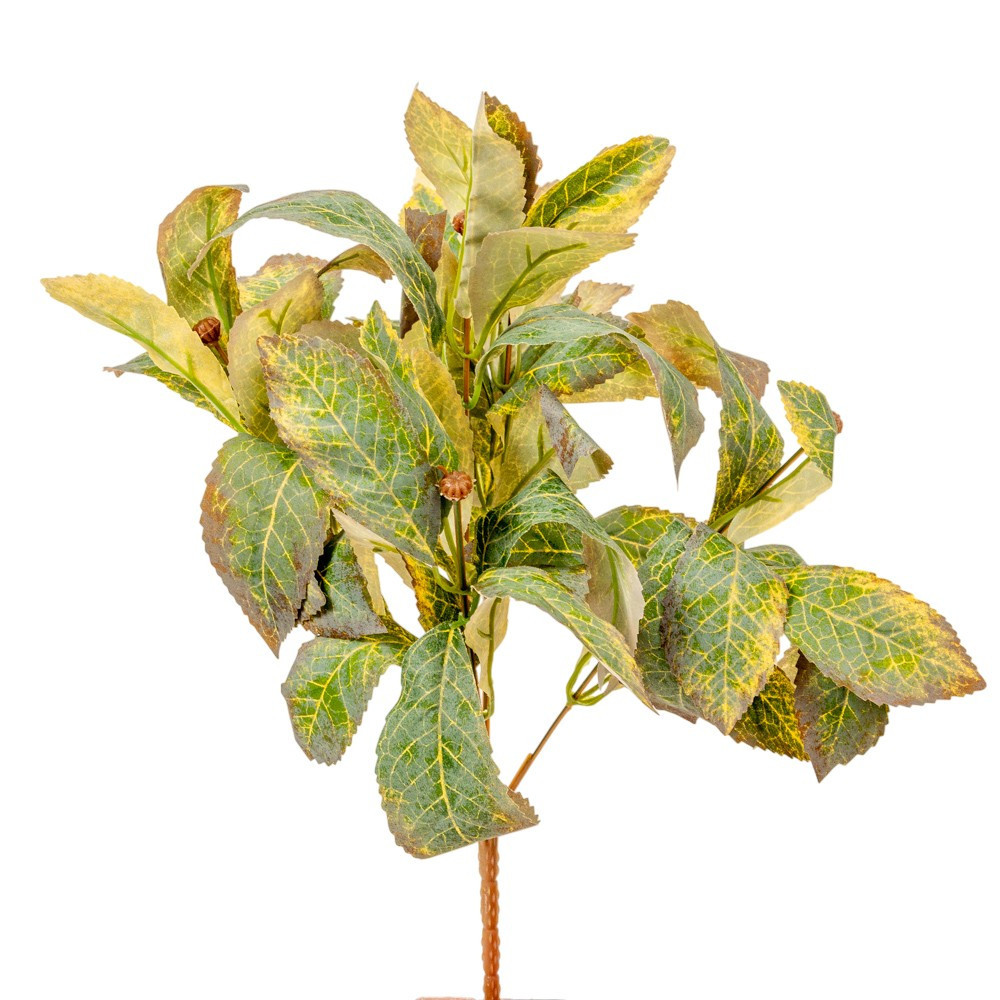 Ez a 38 cm magas, 6 ágra osztott leveles bokor tökéletes kiegészítő minden kreatív alkotáshoz. Tartós, formáját jól tartó anyagból készült, így hosszú távon is megőrzi esztétikus megjelenését. A levelek finom erezete és árnyalatai élethű hatást keltenek, így kiválóan illik natúr, őszi vagy karácsonyi díszekhez is. Használhatod önmagában vázába téve, koszorúalapba illesztve, vagy más virágokkal kombinálva – mindig harmonikus, természetes összhatást biztosít.
