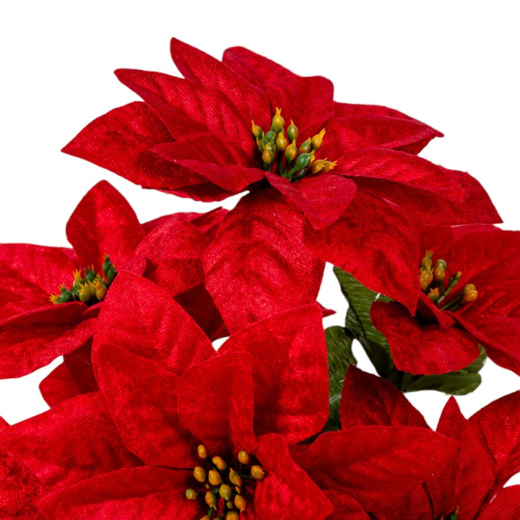 A 38 cm hosszú, hét virágos mikulásvirág csokor ünnepi hangulatot ad bármely dekorációnak. A piros szirmok erős színt visznek koszorúkba, asztaldíszekbe vagy ajtódíszekbe. A művirág könnyen formázható, ezért pontosan úgy rendezheted el, ahogyan a kompozíció megkívánja.