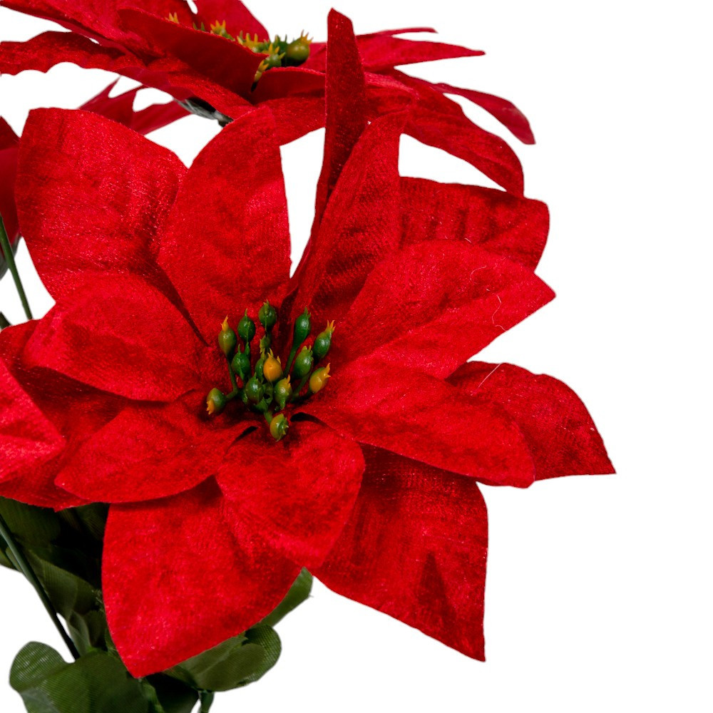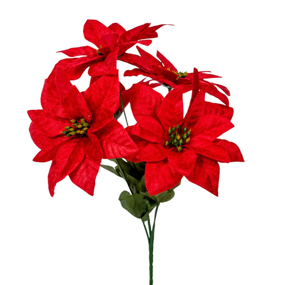 Ez az 5 virágos piros mikulásvirág csokor a klasszikus karácsonyi hangulat egyik legkedveltebb eleme. A vibráló piros szirmok és a részletgazdag virágközpont modern, mégis hagyományos megjelenést adnak. A csokor sűrű, jól formázható elrendezésű, így könnyen beillesztheted bármilyen dekorációba.