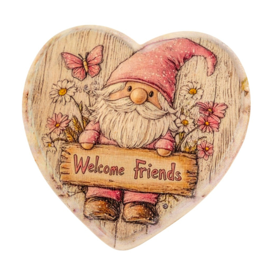 A rózsaszín manós nyomtatott fa tábla a természetes alapanyagok és a modern illusztrációk harmonikus találkozása. A peremes megoldás nemcsak védi a mintát, hanem különleges keretet is ad neki, amitől a dekorációd még professzionálisabb hatást kelt.