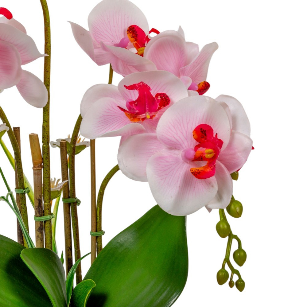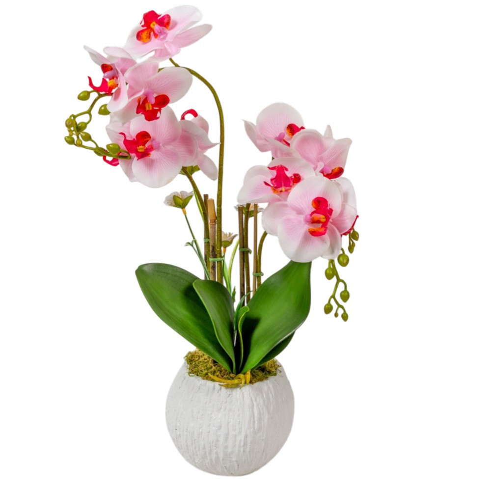 Ez az orchidea remekül kombinálható más dekorációs kellékekkel, például selyem szalagokkal vagy elegáns kaspókkal is. Ha szereted a prémium minőségű, élethű és gondozásmentes kiegészítőket, ez az 50 cm-es fehér-rózsaszín orchidea lesz az otthonod új kedvence. Válaszd a minőségi dekoráció és az örök virágzás élményét!
