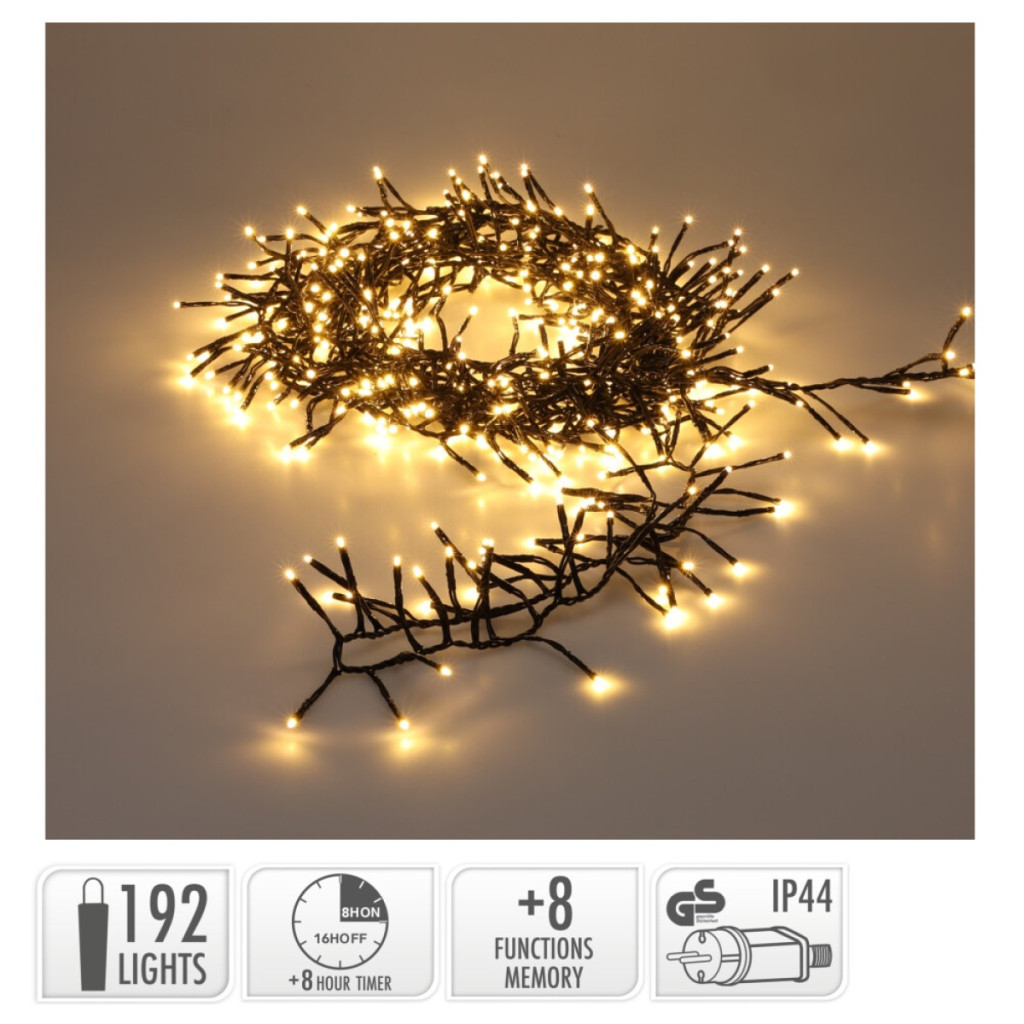 Sűrű fényfüzér 192 LED-es időzítős programos adapteres hideg