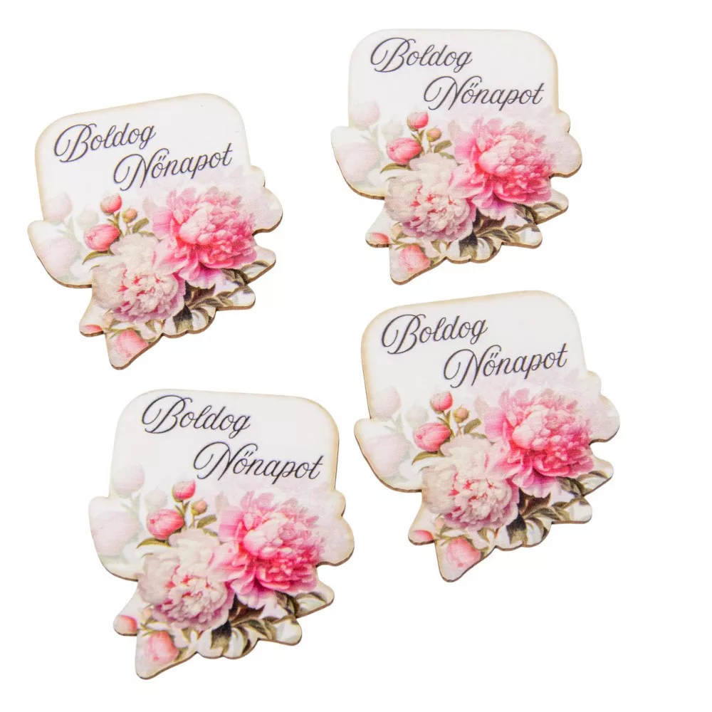 Nyomtatott dekorkarton Boldog nőnapot virágos tábla rózsaszín 6cm 4db-os