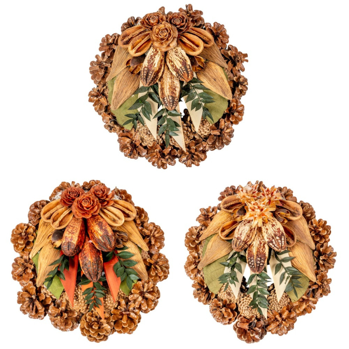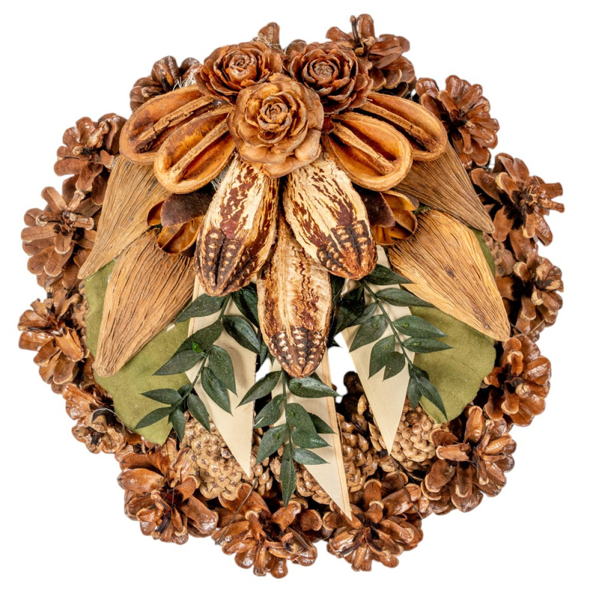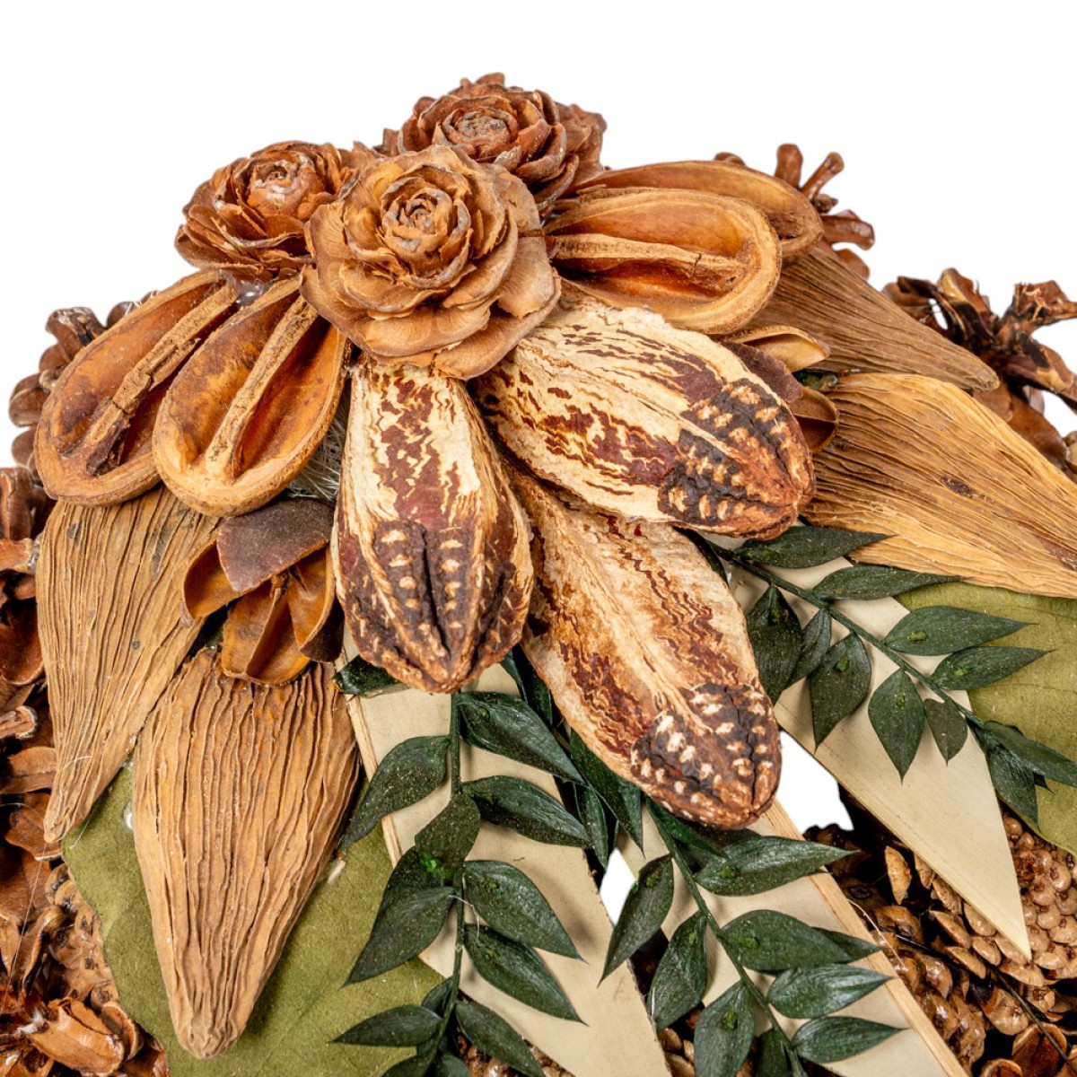 Rózsatoboz koszorú trópusi szárazvirág díszítéssel 25cm