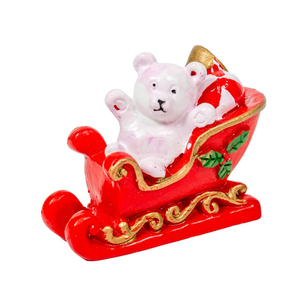 A piros-arany díszítésű szánkón ülő fehér jegesmackó kedves, ünnepi hangulatot áraszt. Kézzel festett részletei és csillogó színei életre keltik a karácsony varázsát.