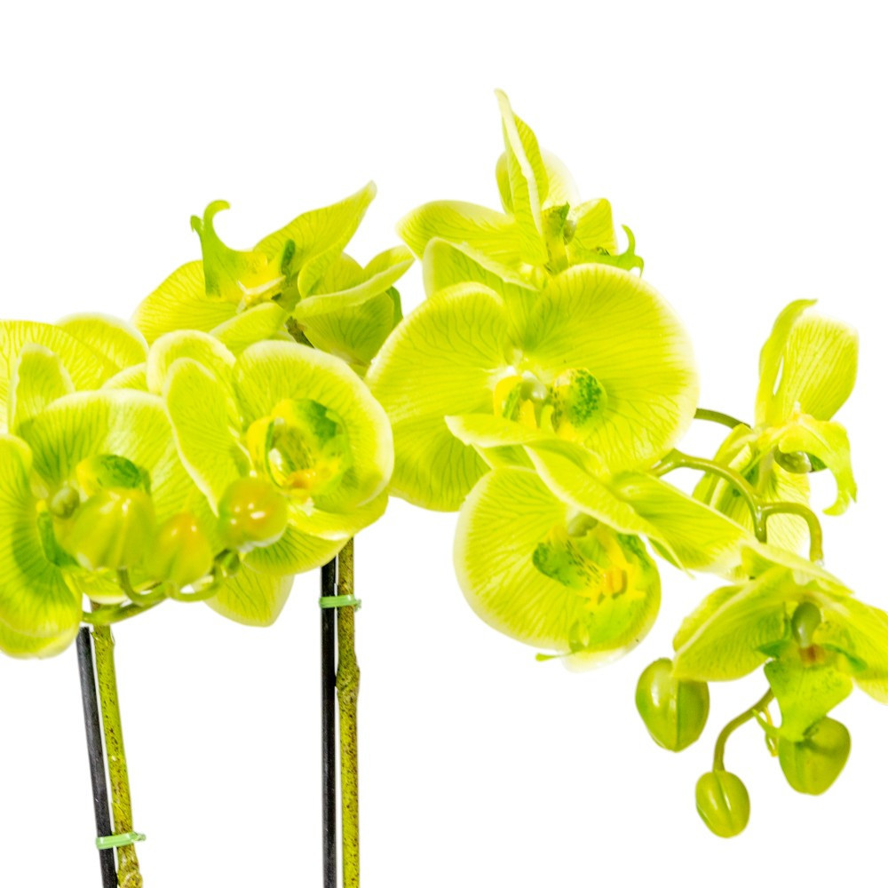 A zöld orchidea a megújulást és a természet erejét jelképezi, ez a gumi orchidea pedig segít abban, hogy ezt a friss esztétikumot tartós formában élvezhesd. A hagyományos selyemvirágokkal ellentétben a gumi orchidea szirmai lágy, húsos tapintásúak, ami a legmagasabb minőséget képviseli a dekorációs növények világában.
